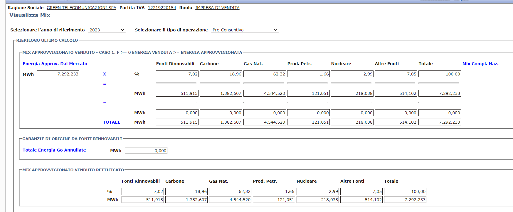 · sulla composizione del mix energetico medio utilizzato per la produzione dell’energia elettrica immessa nel sistema elettrico italiano nell’anno 2024, come pubblicato dal Gestore dei Servizi Energetici (GSE);